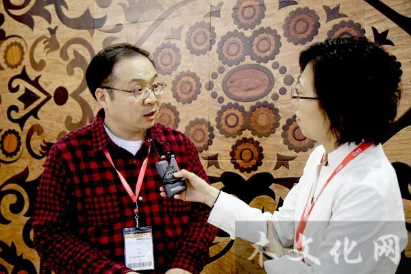 Tiger:与其我说,不如你看,对面那块大的板子,它整个造型和图案是不是像中国敦煌的壁画!这就是民族的。我们相信最终我们拼花艺术能够被人们所享用,最主要原因在于它的文化的特殊性,所以更验证了过去的一句老话叫做“民族的就是世界的”。