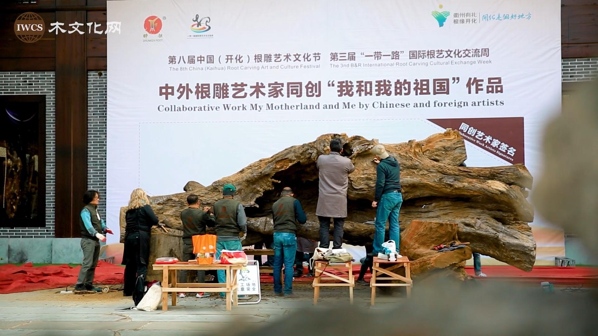 14位“一带一路”沿线国家的根雕艺术家应邀来到开化,在为期一周的现场创作中,艺术家除了每人独立创作一件根雕作品外,还与中国木雕艺术家在同一件根材上,以“我和我的祖国”为主题,分别雕刻一个代表自己祖国的符号,如图腾、代表性建筑、河流山川或文化名人等,将自己对祖国的情感溶于根艺中,用不同工具、不同的方式,展示各自的美学思想和对根的理解,诠释自己的文化基因,他们共同完成了一件寓意深刻的大型根雕艺术作品。