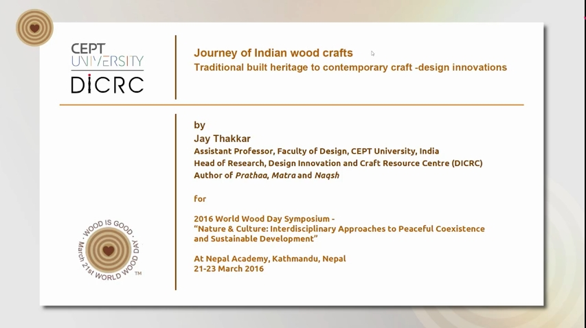 This presentation is the journey through the traditional Indian wooden architecture to the wood craft practices to a systematic institutional model of research and innovation in the wood crafts of India.