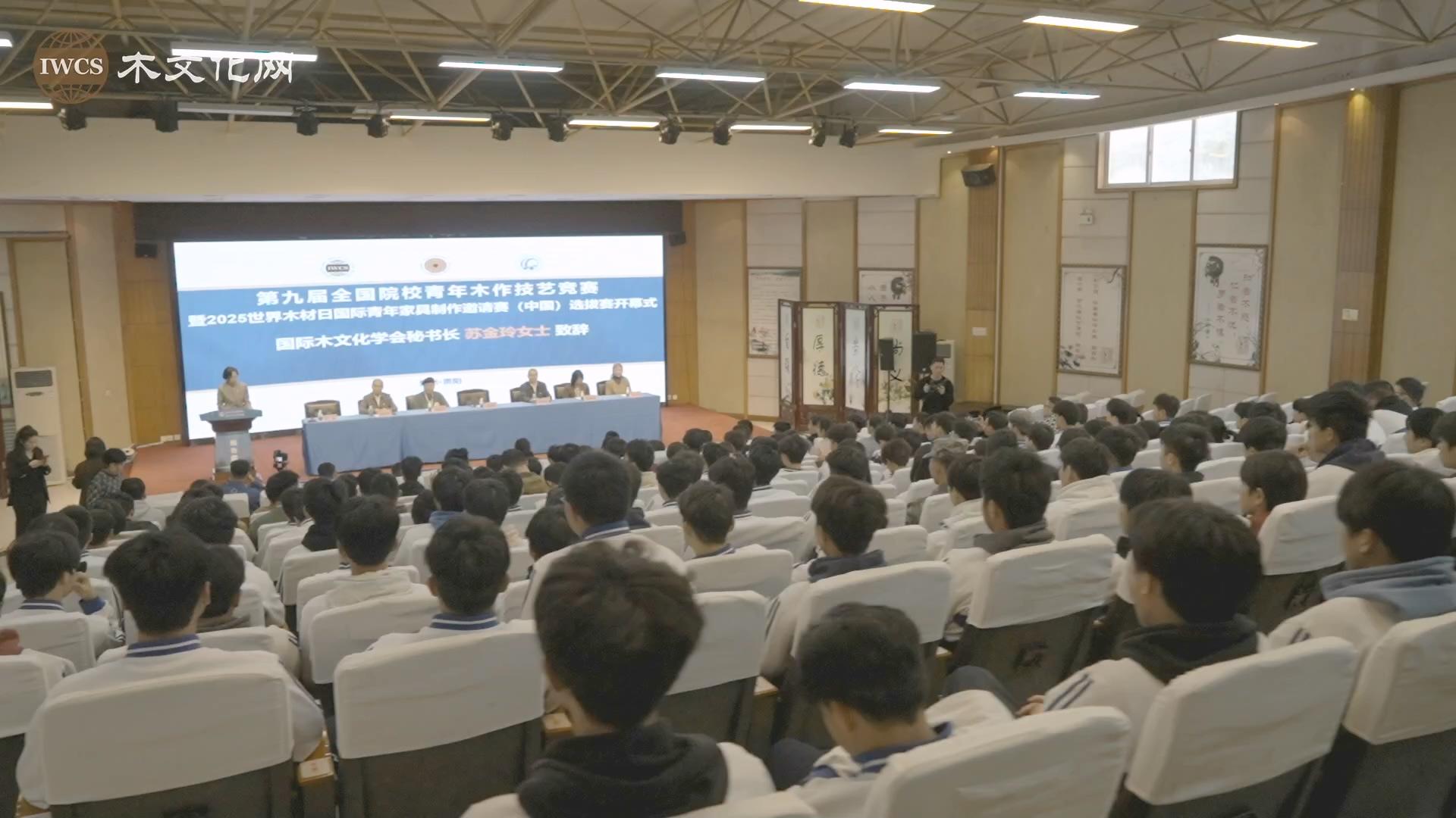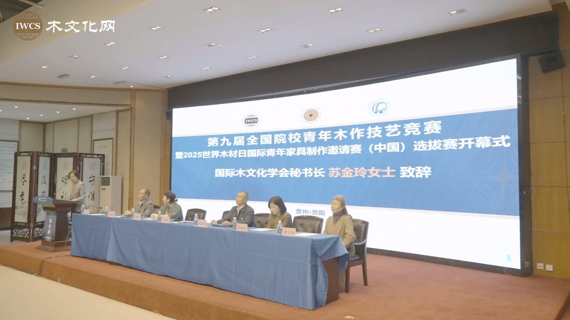 2024年4月11日-14日,第九届全国院校青年木作技艺竞赛暨2025世界木材日国际青年家具制作邀请赛(中国)选拔赛在贵州交通技师学院成功举办。11日上午,大赛开幕式上,国际木文化学会和世界木材日基金会秘书长苏金玲发表了热情洋溢的致辞。