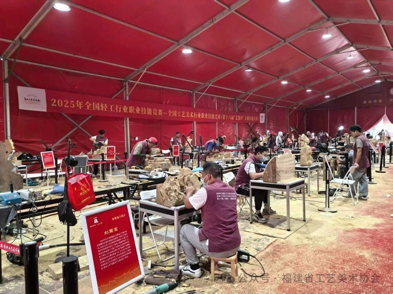 10月27日,2025年全国轻工行业职业技能竞赛、全国工艺美术行业职业技能竞赛、第十六届“艺鼎杯”木雕技艺竞赛在莆田工艺美术城鸣锣开赛。本届大赛由中国轻工业联合会、中国工艺美术协会、中国财贸轻纺烟草工会主办,福建省工艺美术协会木雕专业委员会、莆田市总工会、莆田市工艺美术协会、莆田工艺美术城产业发展中心承办。
