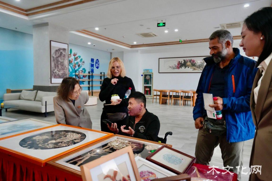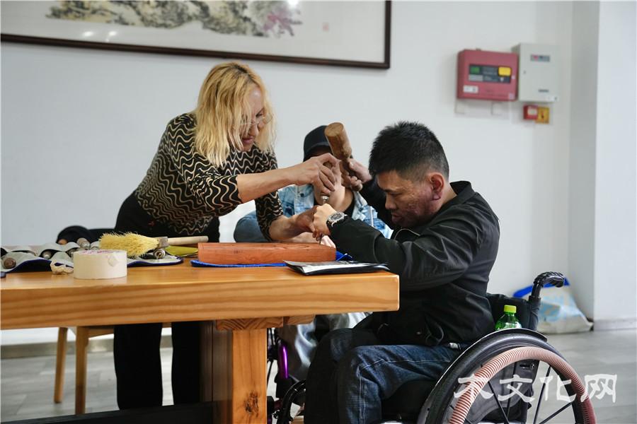 木艺技艺展示区里,中外艺术家与残疾人大师现场切磋,一刀一刻间尽显非遗魅力;残疾人非遗大师们不仅展示了精心创作的非遗作品,也分享了与命运抗争、坚守技艺的动人故事。