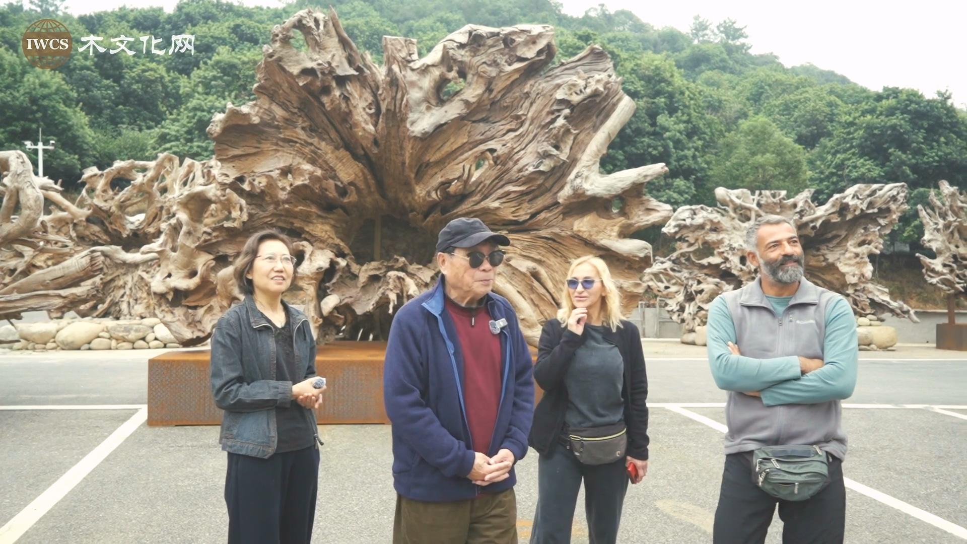 浙江长兴东方梅园掌舵人吴晓红先生,亲自带领国际木文化学会一行,探访古森林博物馆、古森林艺术长廊等标志性景观。众人近距离感受中国古森林文化的深厚底蕴,以及木艺创作的独特魅力。围绕古树根的天然纹理、肌理与线条,吴晓红详细阐释了 “一馆一廊一壁一路” 的独创性构想。