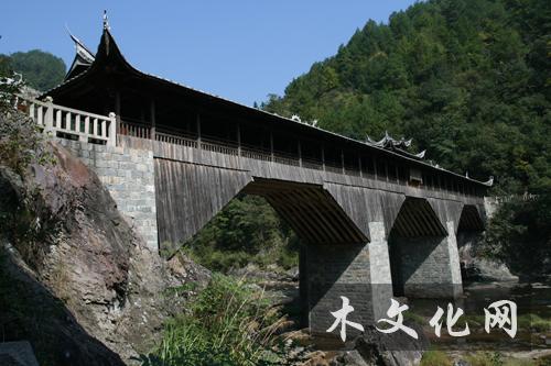 我国木拱廊桥集中在闽浙边界,主要分布在福建寿宁、屏南和浙江泰顺、庆元、景宁等地。目前全国保存下来的木拱廊桥有一百多座,在福建宁德境内有五十四座,其中寿宁县有十九座保存完整、最具特色木拱廊桥,为“中国之最”。 福建省屏南县长桥镇长桥村的“万安桥”,是全国现存最长的木拱廊桥。该桥为五墩六孔木拱廊屋桥。桥长98.2米、宽4.7米,舟形墩,不等跨,最短拱跨为 10.6米,最长拱跨为15.2米。桥屋38开间、用柱156根,穿斗式木构架,双坡顶,两侧设木凳。