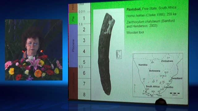 The oldest clear evidence of a wooden artefact from Africa is from the spring mound at Florisbad, Free State, South Africa. A piece of wood with one end showing working to a flat edge, made from Zanthoxylum chalybeum (Rutaceae), was found in the same level as the skull of Homo helmei, dated at 259 000 years. Charcoal in open air occupation sites or cave sites is good evidence of use of wood by later hominids and humans. The oldest examples of charcoal are from a cave deposit in the northern Cape, South Africa, Wonderwerk. The cave was occupied from ~ 2 Ma to the present. Charcoal is abundant in the hearths in the middle layers (Acheulean) but occurs as far down as layer 12, dated at 1.96 – 1.78 Ma (Palaeomagnetic dating; Olduvai Normal).