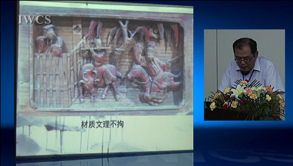 4. 大胆的构图布局。抓住最能代表人物或事件的特征,简约的手段,来,给人一种举重若轻的艺术感受。处理情节化构图时往往仰承汉代壁画、石、画像砖的整体风格趣味,戏剧性的事件,布局时,在一块不大的木板上雕刻众多人物,里面可以表现不同空间的全过程。