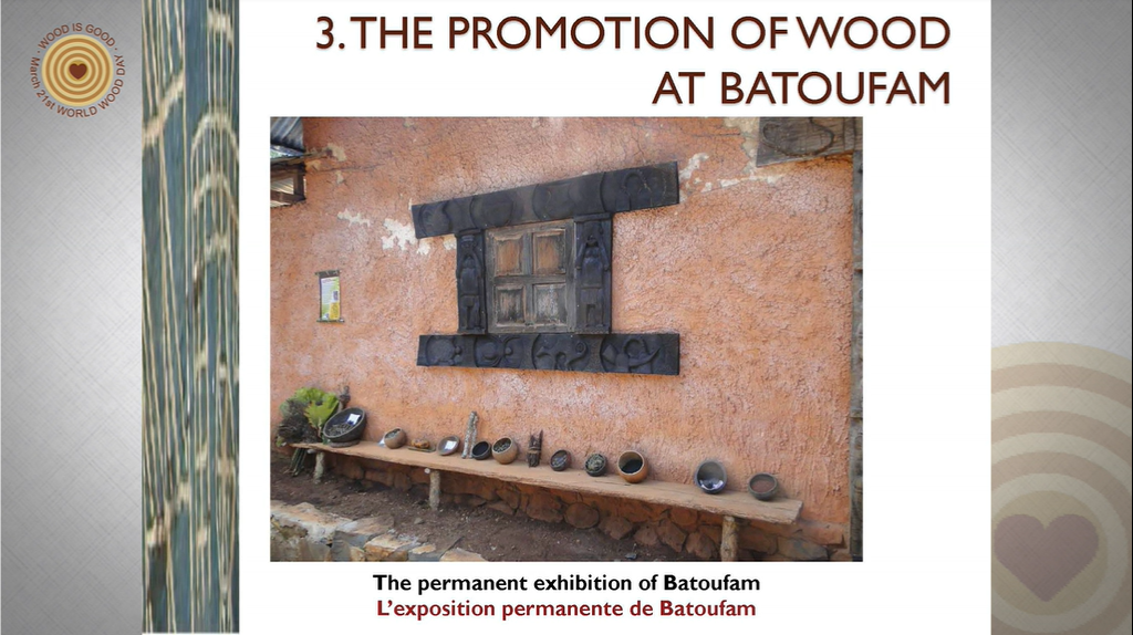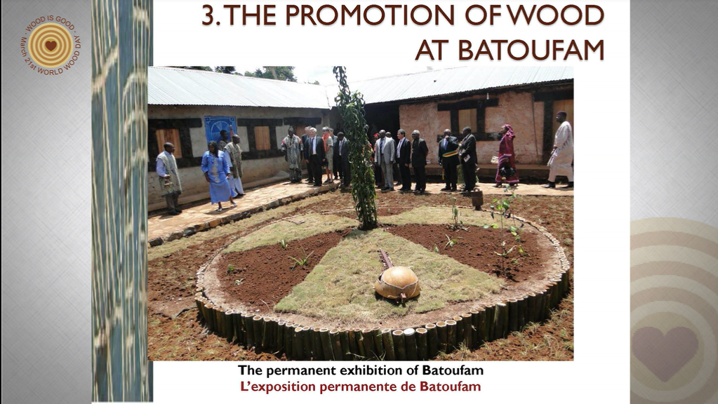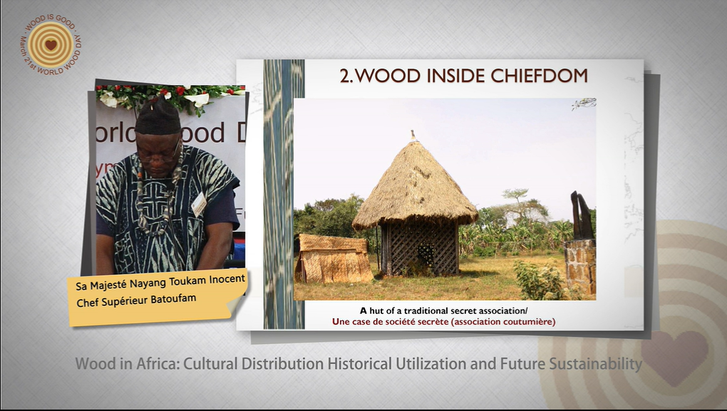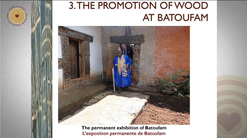 The wood core essence within bamiléké cultures sees alas, now threatened , won by the phenomenon of deforestation due to the increasing modernity of our societies. Hence the importance , in this celebratory occasion of the World Day of wood to reveal this sacred and historical value that incorporates beliefs and way of life of communities. Leadership Batoufam became aware of this weakness and put in place a process of conservation of this rich heritage. We now have a community museum labeled "asset case" by the Road Program chiefdoms whose leadership is a partner. The theme of the exhibition is " Batoufam architecture of power and social cohesion." It is marked by a scenography in the leadership course. The purpose of this approach is to preserve the original architecture and sacred value of wood in all cultural and religious practices of the Bamileke community while participating in cultural diversity.