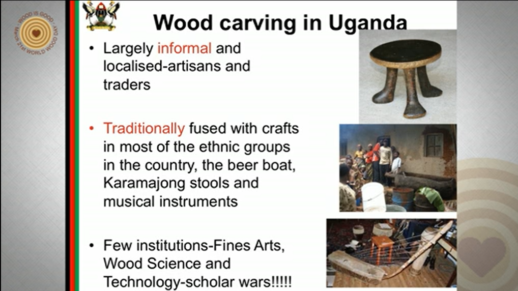 Deforestation and forest degradation contribute about 20% of the global emissions that escalate climate change. Developing countries, such as Uganda, whose major source of livelihood especially in the rural lifestyles is majorly forestry deforestation, face a major challenge of finding alternative sustainable sources of livelihood so as to conserve the forest estate. Uganda is one of the developing countries partnering with developed countries to support its efforts of developing coping mechanisms and adaptations to climate change challenges through the Reduced Emissions from Deforestation and Degradation (REDD) and Payment for Ecosystem Services (PES) programs. Top on the agenda is conservation and development of forest carbon stocks in rural communities living around the forests through payments to communities for conserved forests and availing funds to invest in alternative livelihoods other than unsustainable forestry. There are challenges in obtaining such alternatives to people who practically survive on the forest and probably adopting other non-conventional forest processing avenues such as wood carving wood that would help achieve the REDD and PES schemes in the country. The limited consideration of wood carving as one of the alternatives of livelihood in the communities surrounding the forest is one of the major problems in promotion of REDD and PES initiatives in the country. The objectives of the study were to document the status of wood carving in Uganda and to discuss the opportunities of wood carving as part solution to challenges of Uganda as a developing nation regarding forest utilisation and conservation. Desk review of literature, focus group discussions, key informant interviews and in-depth case studies were used to obtain data for the study. The findings of the study showed that wood carving: is majorly informal an informal business in Uganda albeit a huge potential to transform the wood utilisation sector, is economically profitable to especially the low income communities around forests; contributes to the REDD and PES initiatives of adapting to climate change; is an appropriate solution to utilisation of the thinnings boom in Uganda and can solve the funding challenges of forestry conservation initiatives in the country. The study recommends numerous avenues for promotion of wood carving as a unique coping strategy to the implied challenges of climate change and sustainable forest resources utilisation in Uganda.