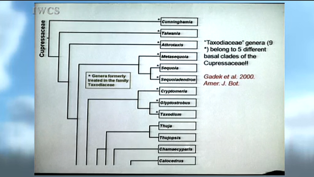 Nine, mostly monospecific, genera of the Cupressaceae: Athrotaxis, Cryptomeria, Cunninghamia, Glyptostrobus, Metasequoia, Sequoia, Sequoiadendron, Taiwania, and Taxodiumwere formerly treated as a separate family, theTaxodiaceae. Phylogenetic studies, especially DNA analyses, have shown them to belong to five basal clades in the Cupressaceae, which have been given the rank of subfamilies. Wood anatomy supports the inclusion of these genera in Cupressaceae. Like many other genera in this family they have relatively abundant axial parenchyma and taxodioid and/or cupressoid crossfield pits (or intermediate pit types) and typically smooth end walls of the ray cells. Ray tracheids are virtually absent, as are normal resin canals. Traumatic resin canals seem only common in Sequoia. Features that do vary are quite few, and can rarely be used to recognize genera or species with certainty. For instance, rays are usually 1(--2)-seriate, but 1—3(--4)-seriate rays occur in old trunks of Sequoia. Bordered inter-tracheid pits are usually 1(--2)-seriate, but opposite 2—3(--4)-seriate pits occur in Sequoia,Taiwania and Taxodium, and occasionally in Metasequioa. Pits with notched borders occur in Athrotaxis, Cryptomeria, Taiwania and Sequoia (but reputedly not in Sequoiadendron). Indentures at the interface of horizontal and tangential ray cell walls are restricted to Crytomeria, Taiwania and Taxodium but vary in distinctness. A major problem for the microscopic identification of wood of the Cupressaceae (including the “Taxodiaceae”), is that within-a- tree and within-a-species variation may overlap or even exceed the variation among the genera. However, on a regional or local level, when the number of possible candidates of wild or cultivated species is low, wood anatomical identification is often possible. For the identification of fossil woods the problem is even more difficult, because several features such as crossfield pit types and ray cell wall details may be hard to observe in fossils, and because there were more genera and species of Cupressaceae in the past than have survived in the modern floras.