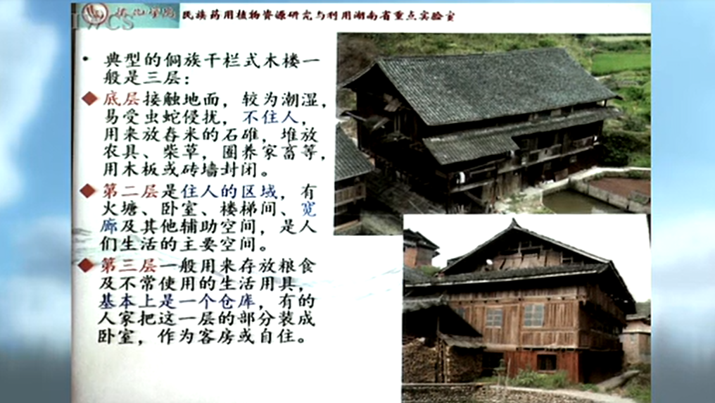 The Dongs’buildings include residential buildings, living buildings, production buildings, memorial buildings and worship buildings, all parts of which, except the roof tiles, are made of Chinese fir and are free from using any nails and rivets. Due to their tight and solid structure, these buildings are able to stand well for hundreds of years. The particular residential building of Dong people is Diaojiaolou (a building supported with poles), whose architectural style is closely related to the natural environment and the traditional customs and generally retains the architectural features of the ancient times of Yue: herringbone architecture with dry column type. A typical Diaojiaolou consists of three floors: the first floor for raising livestock, the second floor for people’s living and the third floor for warehouse and guest rooms. The first floor has only supporting poles, while the second and third floors generally have suspended corridors with Xieshan-style ridges.