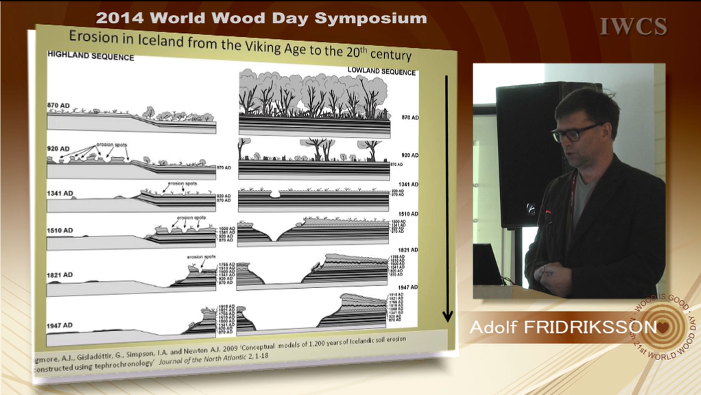 In the paper, the archaeological evidence for the useof wood in Iceland will be discussed. Iceland is an unusual case in the historyof human interaction with nature. This large, volcanic island, separated fromEurope and America by the vast North-Atlantic Ocean on both sides, was one ofthe last big landmasses to be settled by people. The Vikings were the firstsettlers, arriving in Iceland during the 9th century. At that time,much of the island was covered by birch forests. Research has shown, that theforests declined rapidly soon after the arrival of the settlers, and wereoverexploited centuries later. Apart from birch, the other main source of woodwas driftwood, arriving on Icelandic shores from the forests of Siberia.