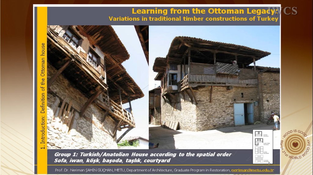 The aim of paper is to introduce the traditional timber constructions in Turkey, which form a majority in existing Ottoman legacy.