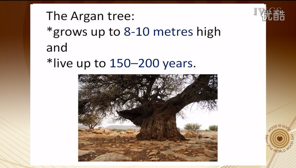 Argan grows to 8-10 metres high and live up to 150-200 years. They are thorny, with gnarled trunks. The leaves are small, 2-4 cm long, oval with a rounded apex. The flowers are small, with five pale yellow-green petals; flowering is in April. The fruit is 2-4 cm long and 1.5-3 cm broad, with a thick, bitter peel surrounding a sweet-smelling but unpleasantly flavoured layer of pulpy pericarp. This surrounds the very hard nut, which contains one (occasionally two or three) small, oil-rich seeds. The fruit takes over a year to mature, ripening in June to July of the following year.