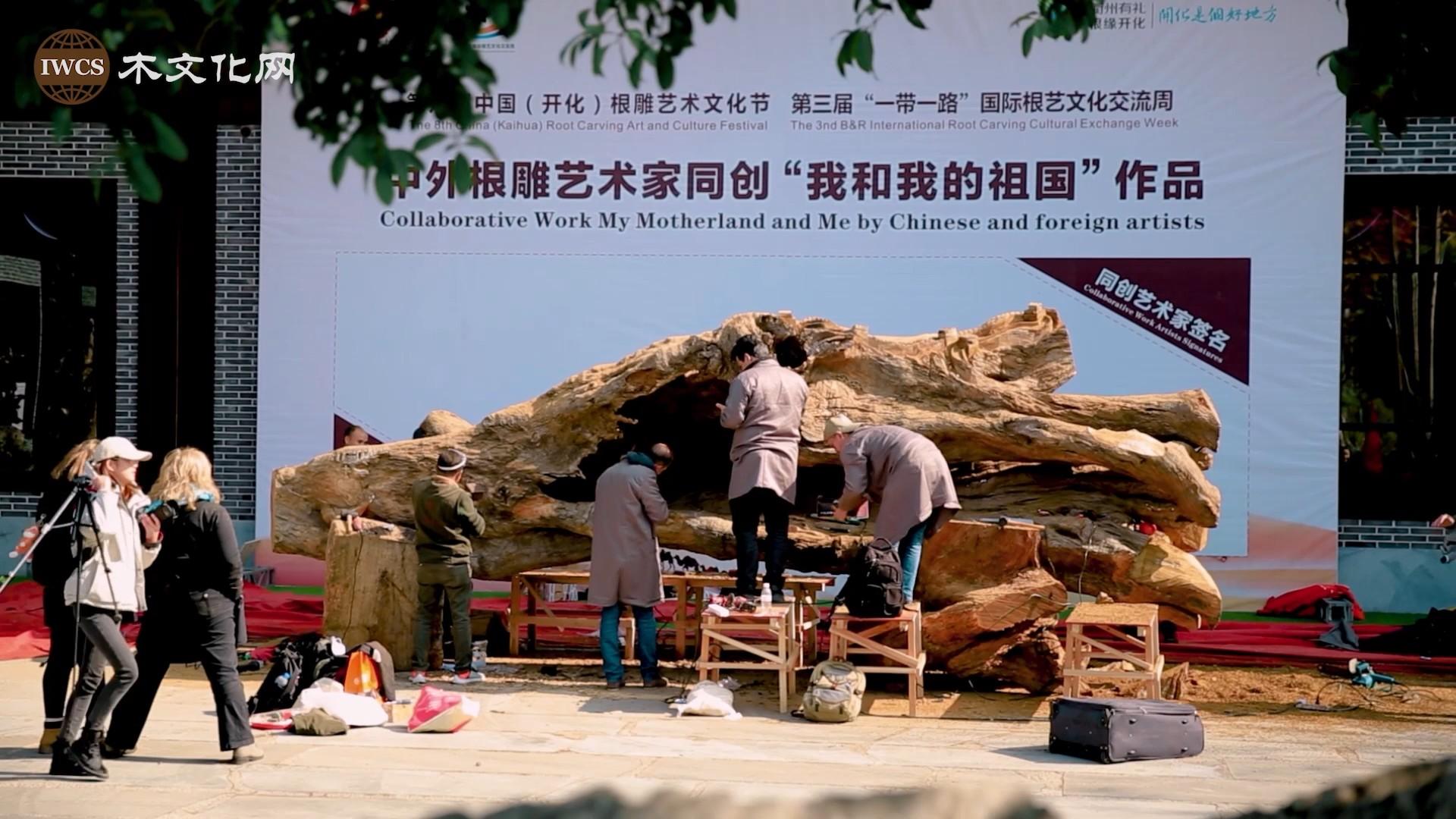 2019年是新中国成立70周年,远道而来的国际根雕艺术家除了每人独立创作一件根雕作品,还与代表中国的开化籍浙江工艺美术大师方义在同一件根材上,以“我和我的祖国”为题,分别雕刻一个代表自己祖国的符号,如图腾、代表性建筑、山川河流等,完成了一件寓意深刻的大型根雕艺术精品。