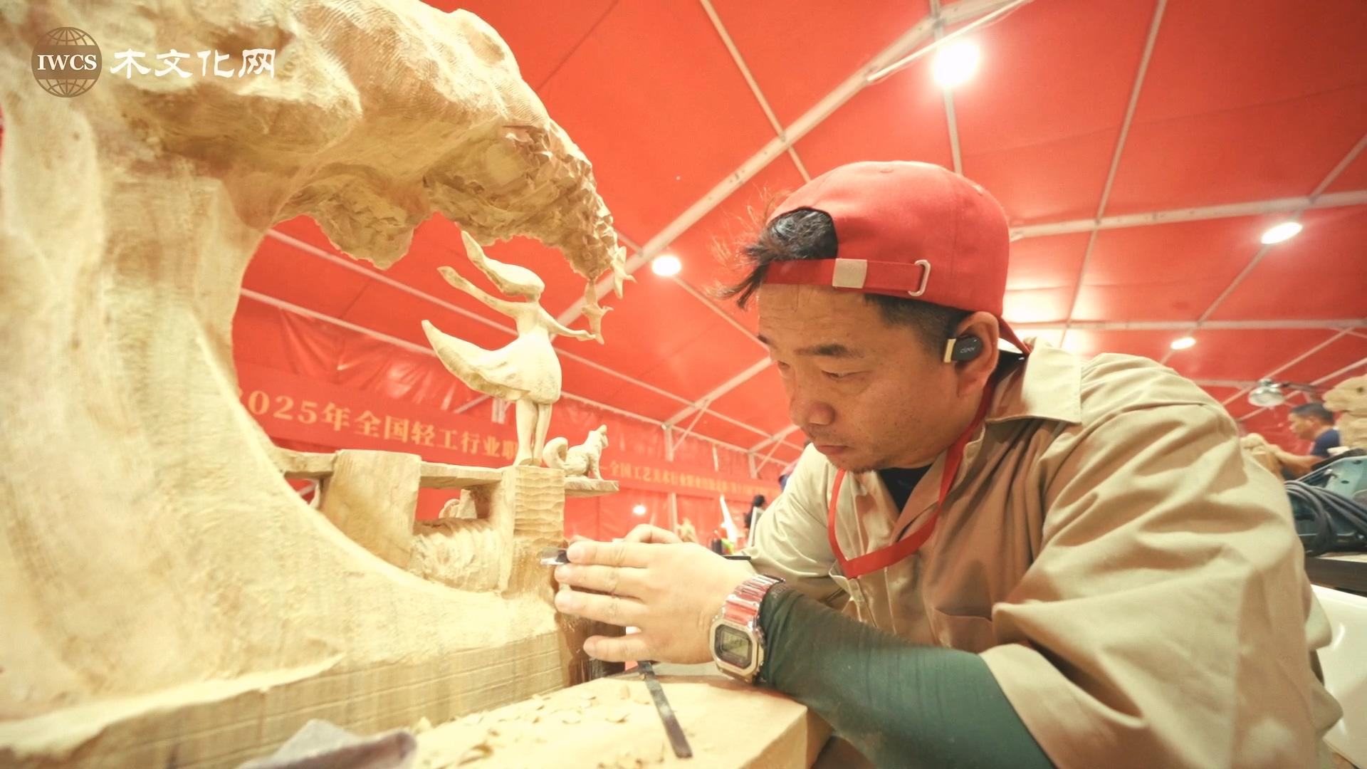作品取材于福建传承百年的游神民俗文化。创作巧用木材色差勾勒人物形象与服饰细节,形成鲜明的视觉对比。