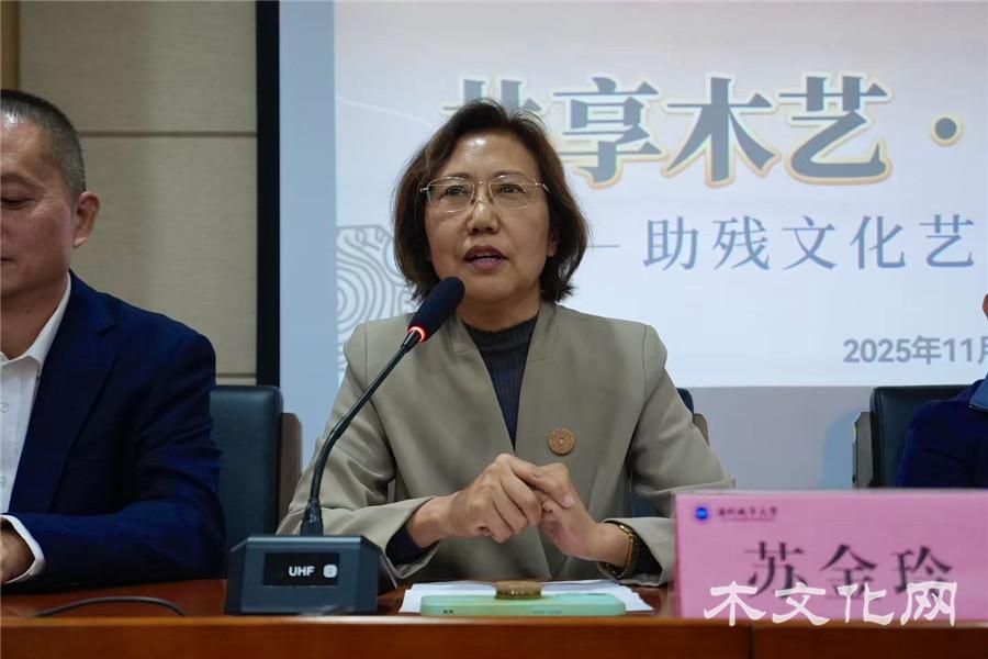 11月3日,“共享木艺·多彩非遗”助残文化艺术交流会在温州开放大学报告厅圆满举办。本次交流会由温州开放大学、国际木文化学会、温州市残疾人联合会联合主办,以“非遗传承·残健共融·国际视野”为主题,推动木文化与传统技艺跨界融合。希腊木艺术家Georgios Athanasakis、塞浦路斯木艺术家Antri Pafiti,中国工艺美术大师高公博,以及20余位温州残疾人非遗大师代表齐聚一堂,与高校师生、媒体记者共同见证这场文化盛宴。温州开放大学党委书记伍挺、温州市残联副理事长黄丽春、国际木文化学会秘书长苏金玲出席开幕式并致辞。活动由温州开放大学副校长朱向军主持。